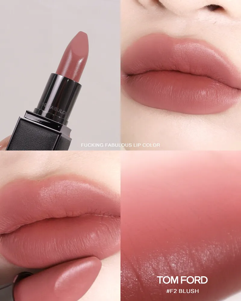 TOMFORD FABULOUS皮革唇膏 F2 Blush:煙燻粉色 優雅知性中帶點低糖微甜的色澤,完美勾勒出聰明美麗都會女性的唇色魅力。 F5 Rose 帶一點木質玫瑰感和微棕色調,厚擦超有秋日氛圍 低飽和的木質玫瑰色調,這色不太挑膚色,任何膚色擦起來都超美的!